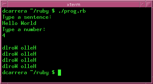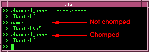 Beautiful! The String#chomp method gives you back the string, but without the terminating newline. So now we can write: