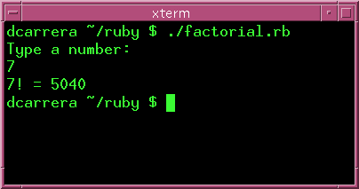Write a factorial program, which takes a number from the user and computes the factorial. It should behave similar to this: